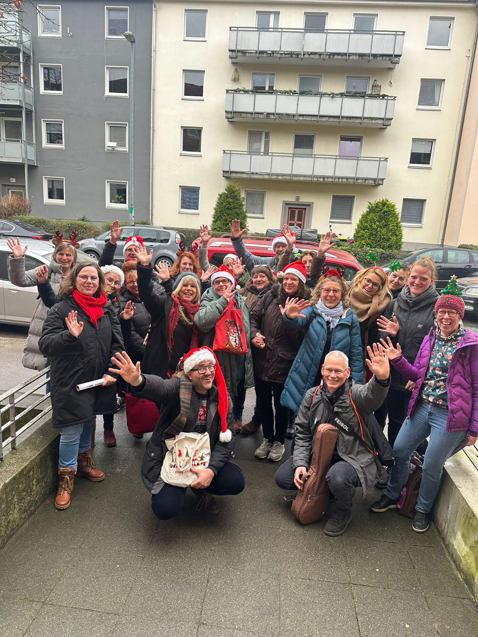 Wir, das sind eine bunte Truppe von Menschen jeden Alters, die wieder anderen Menschen eine kleine Freude in der dunkleren Jahreszeit machen wollen. Und diese Freude verteilen wir in Form von Musik mit den bekannten Kassenschlagern in der Weihnachtszeit, die zum Mitsingen animieren sollen, und Liedern, die einfach nur zum Zuhören und Genießen sind.